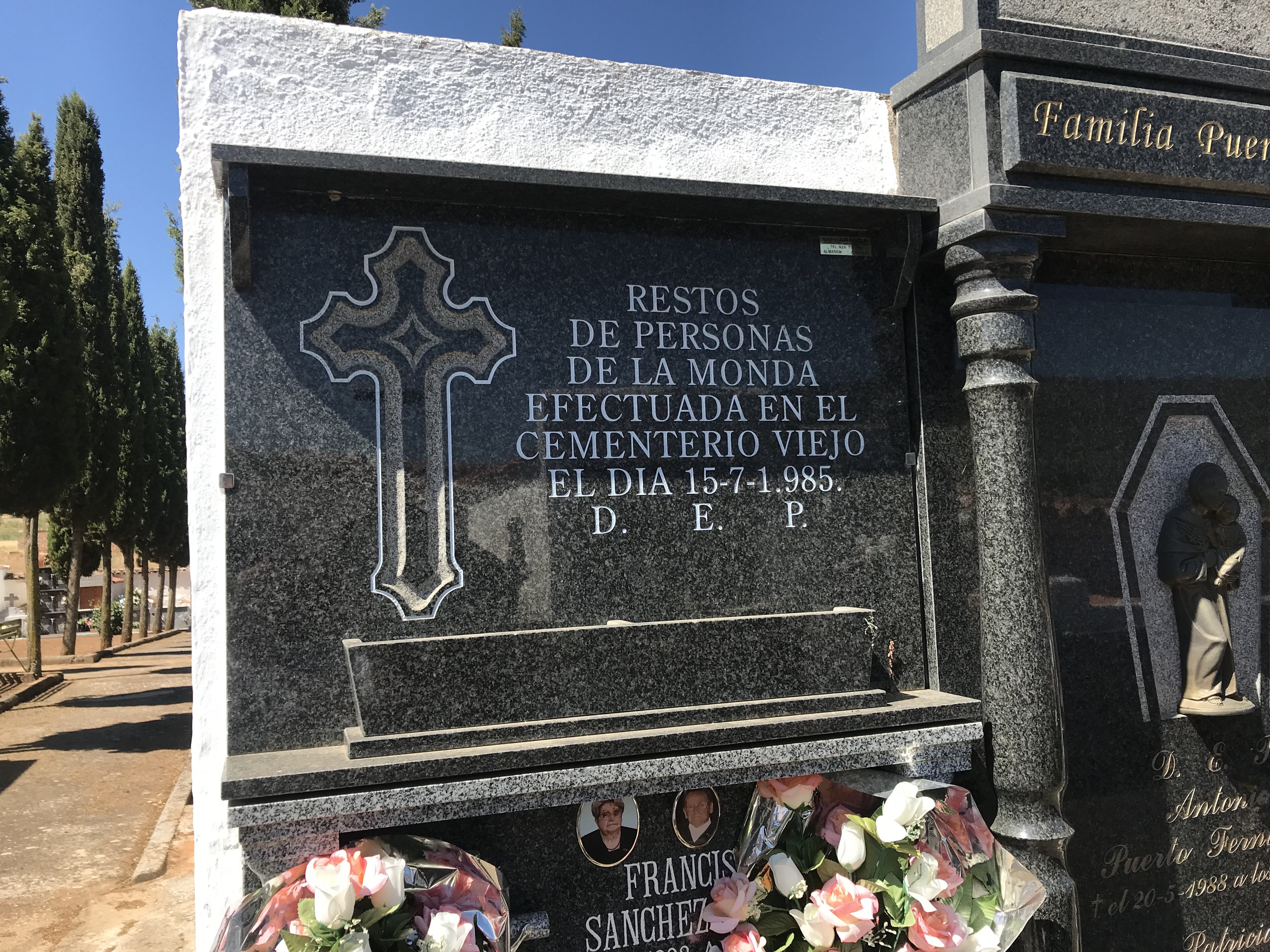 La fosa se encontraba en una esquina del cementerio viejo hasta que en los años ochenta se trasladaron los restos al nuevo cementerio. Esto provocó que se abriera la antigua fosa donde se encontraban los restos y fueran llevados a un nicho que compró el ayuntamiento para tal efecto. Actualmente los restos se encontrarían en el nicho n° 3 de la fila n° 20.