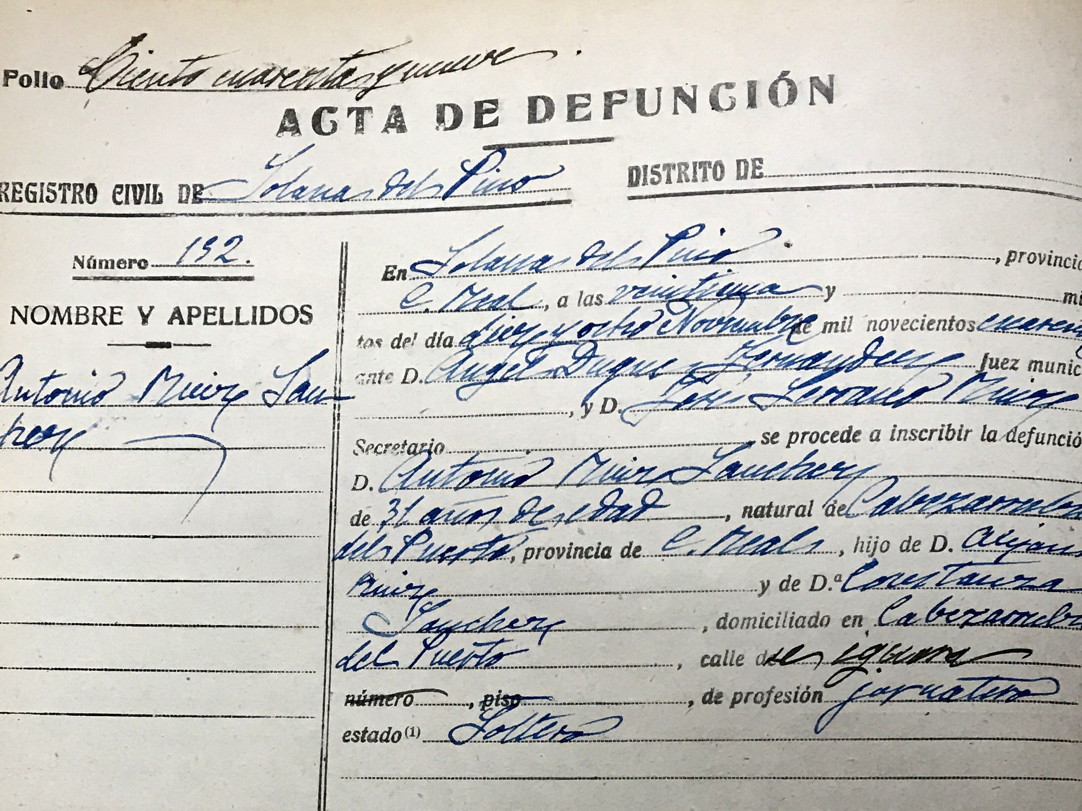 - Lugar: cementerio municipal